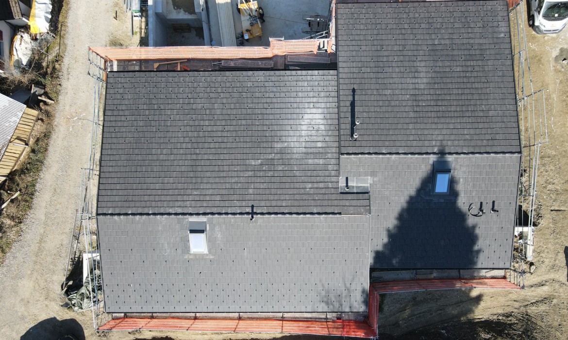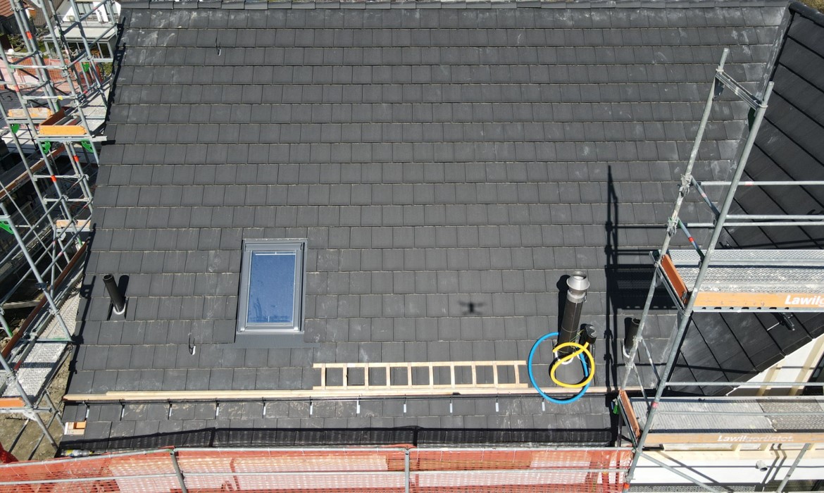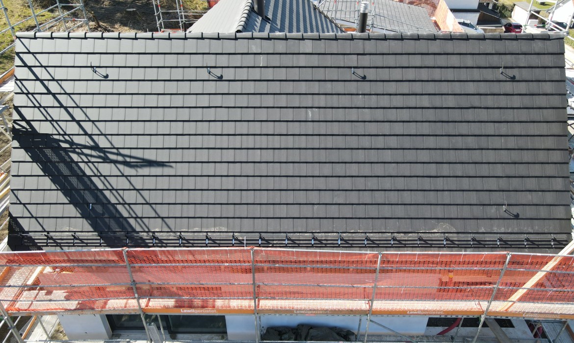 - Bedachungsarbeiten mit schwarzen Betonziegeln